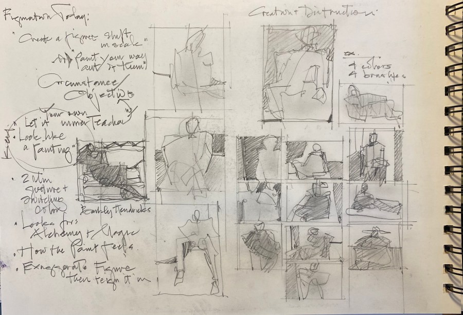 I have countless sketchbooks, dating back to 1985, if not before that date. Reasons for keeping a sketchbook have changed for me over the years. So many lessons and never a regret for keeping them for almost 40 years, that is decades….words, visual notes, doodles, they all matter. Currently, acting as an artist, I use my sketchbooks as reference for paintings and key notes from classes and field sketching. It is a personal book, mostly for my eyes only. However, I hope to create postings on this forum to share my pages, my lessons, pertinent to ‘Sketchbook Lessons.’