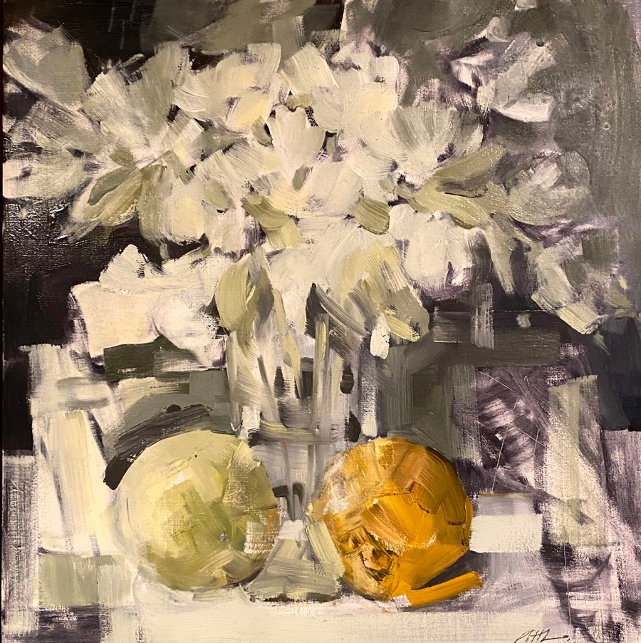 WITHIN THE STUDIO, OIL PAINTING, 12 x 12, FRAMED, $1200